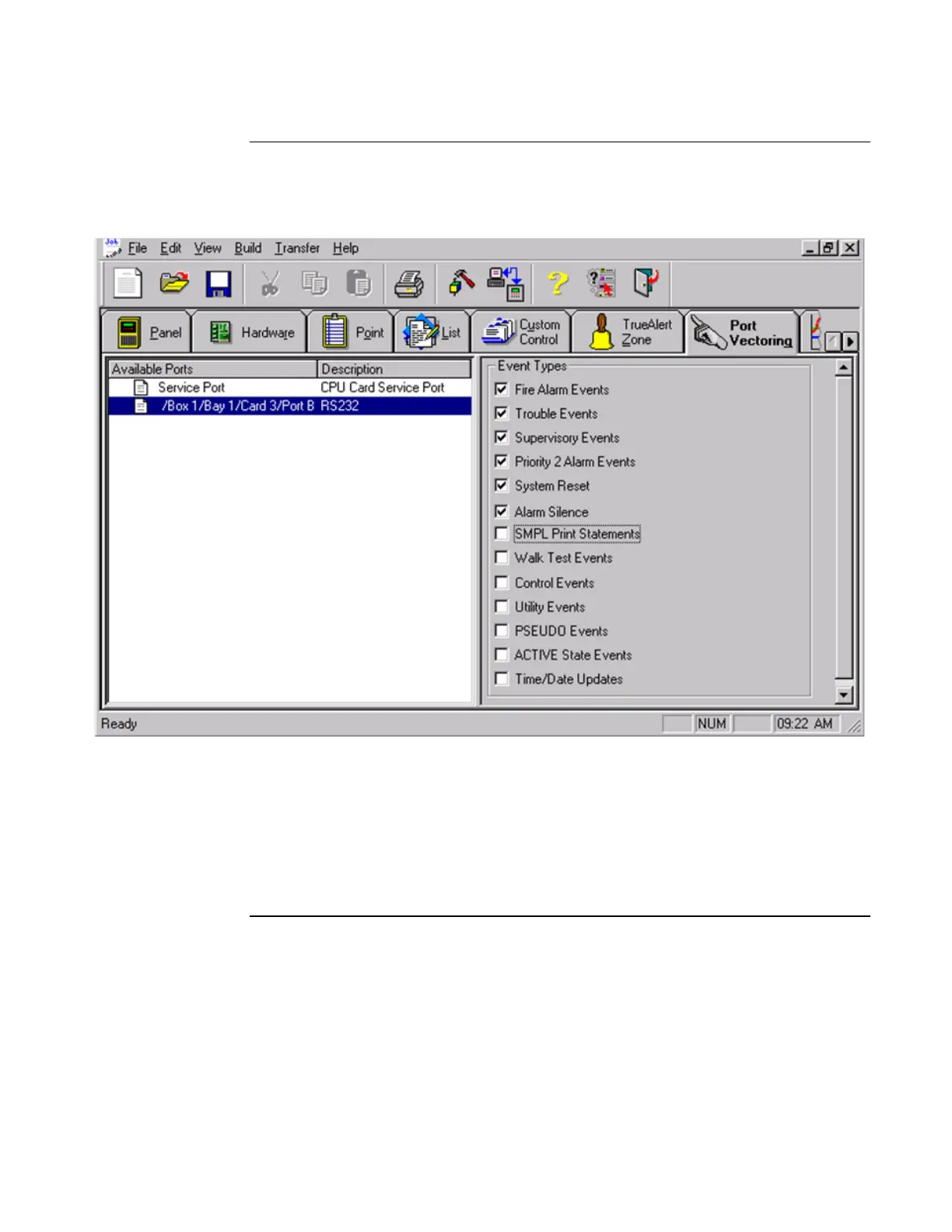 14. Click the Port Vectoring tab and then highlight the RS232 card (not the Service Port