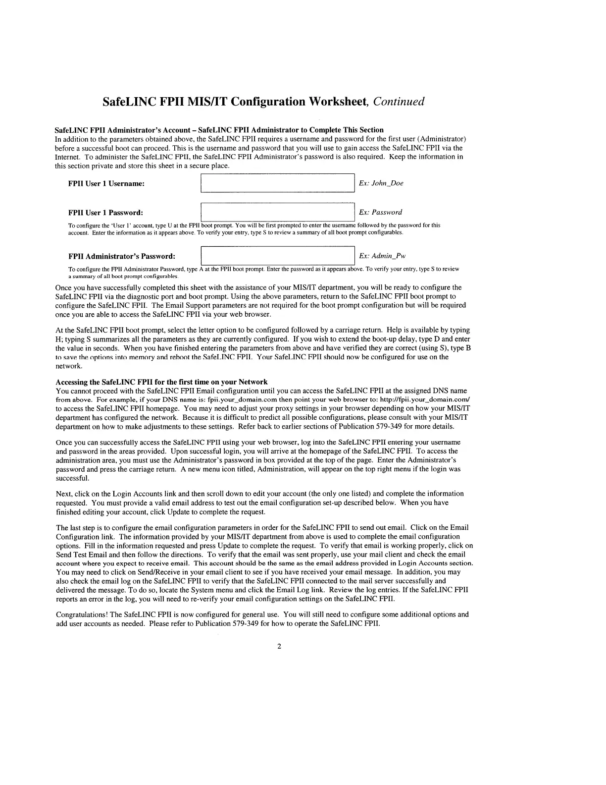 MIS/IT Configuration Worksheet, Continued