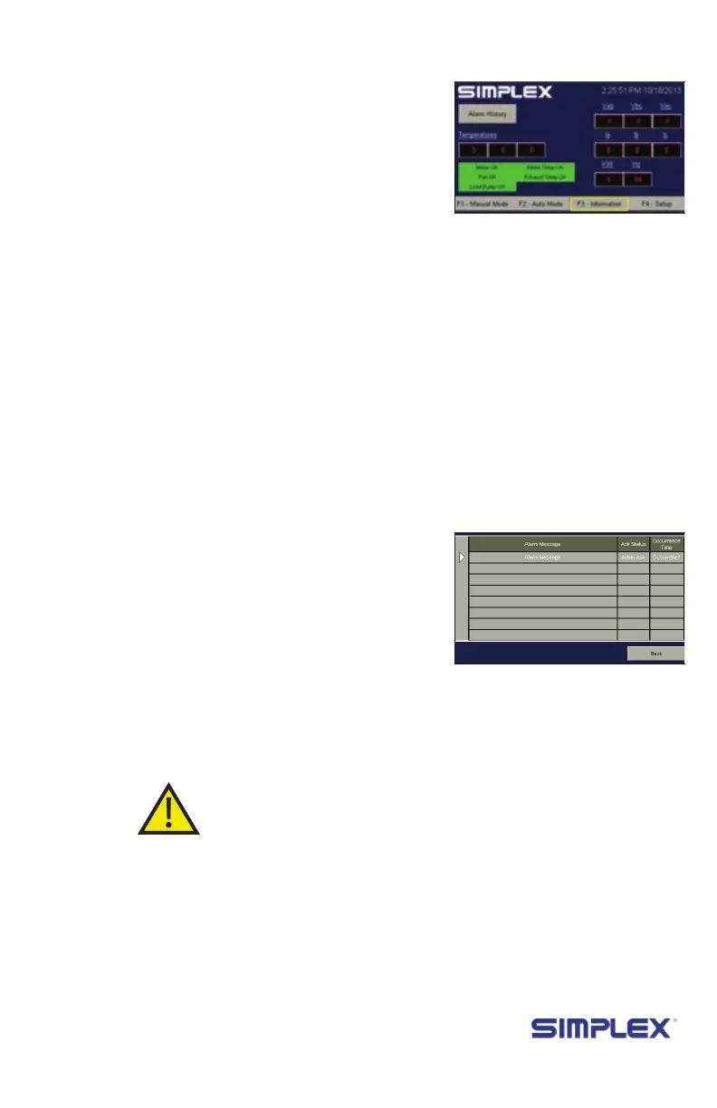 Pressing “Alarm History” on this screen will bring up a list of