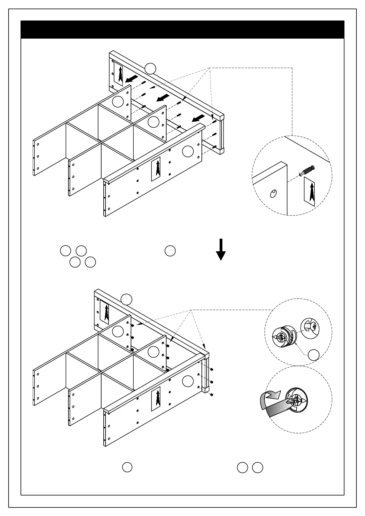 Use Phillips screwdriver to secure Cam Locks. Do not over-tighten