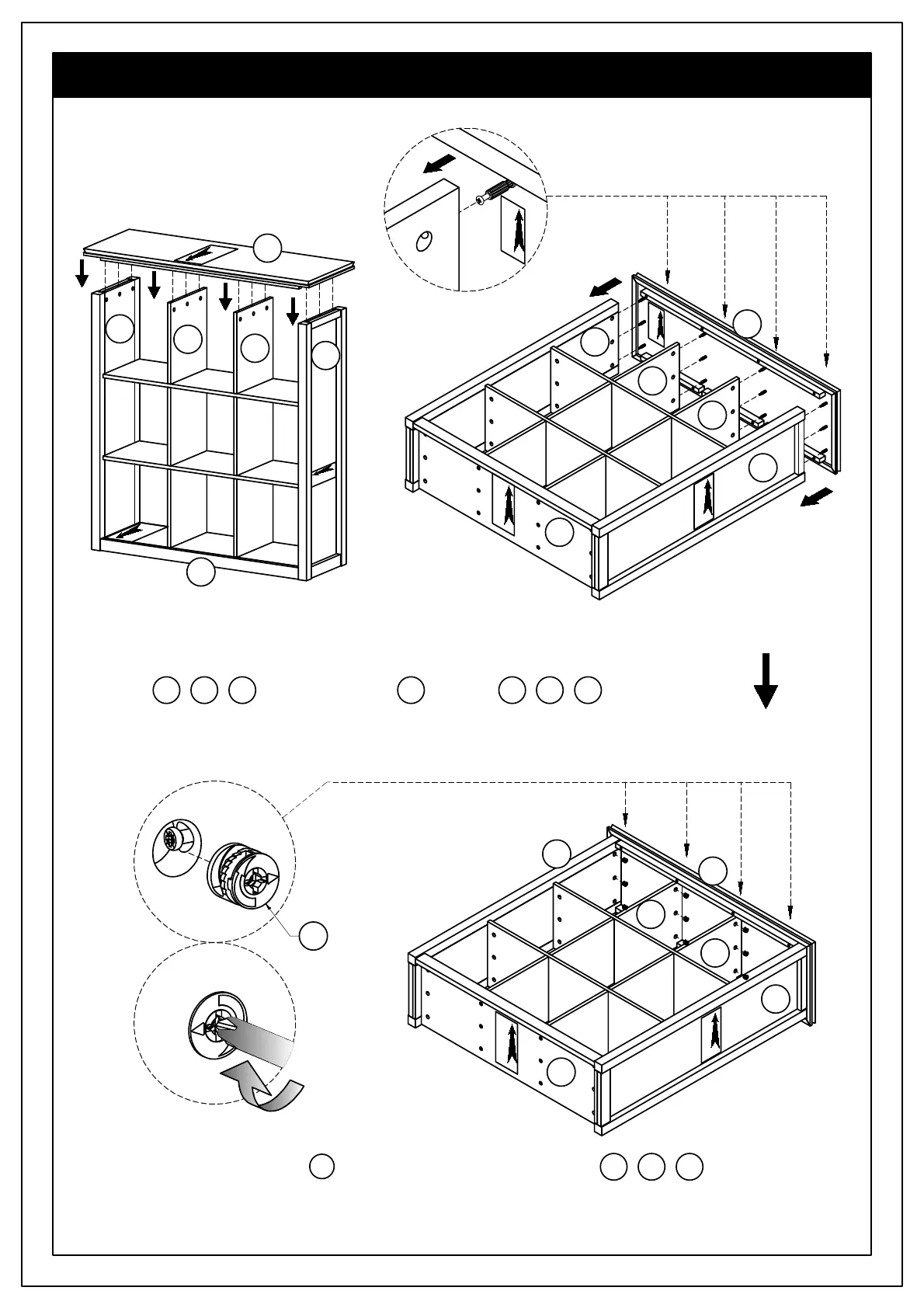 Cam Locks 2 into guide holes on