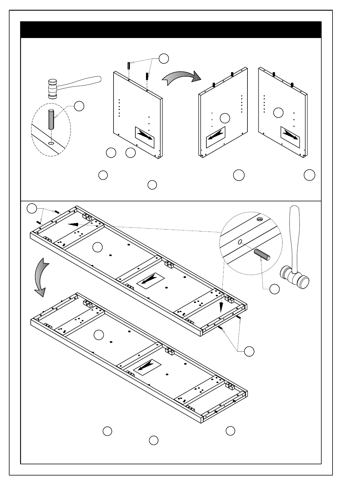 2. Use rubber mallet to tap Dowels 11 into bottom of holes securely. 1/2 length of