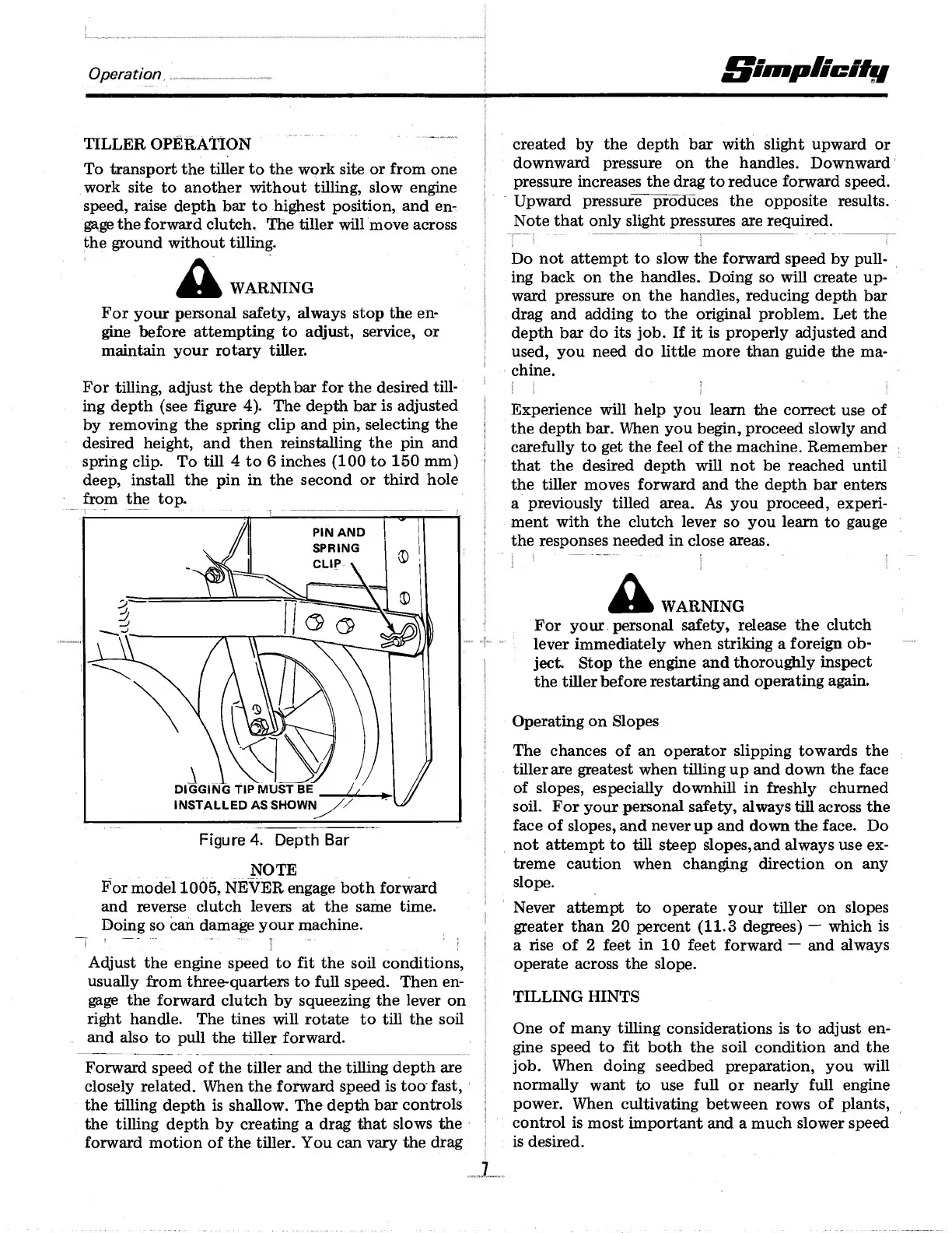 Simplicity 1003 - Tiller Operation; Tilling Hints