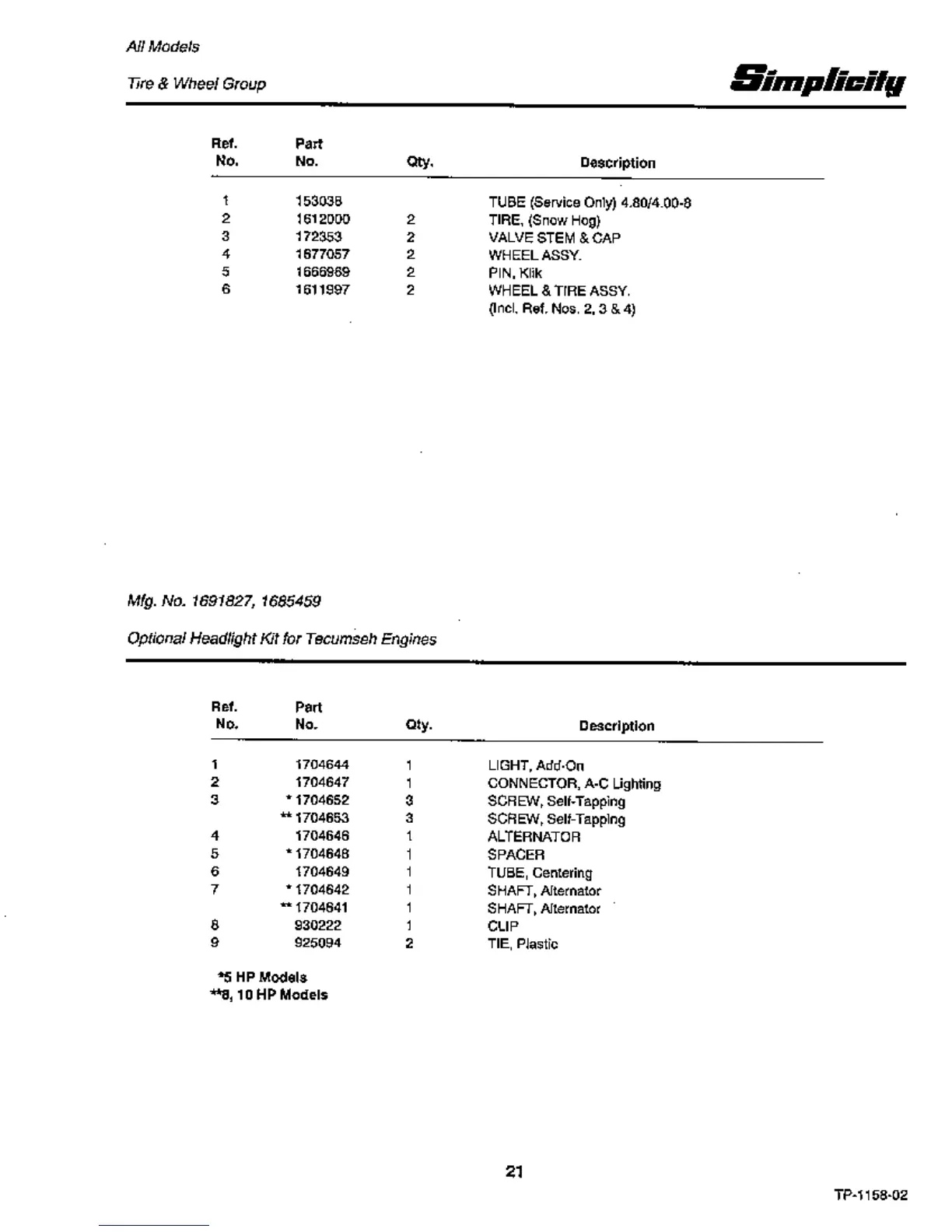 Other manuals for Simplicity 1080S