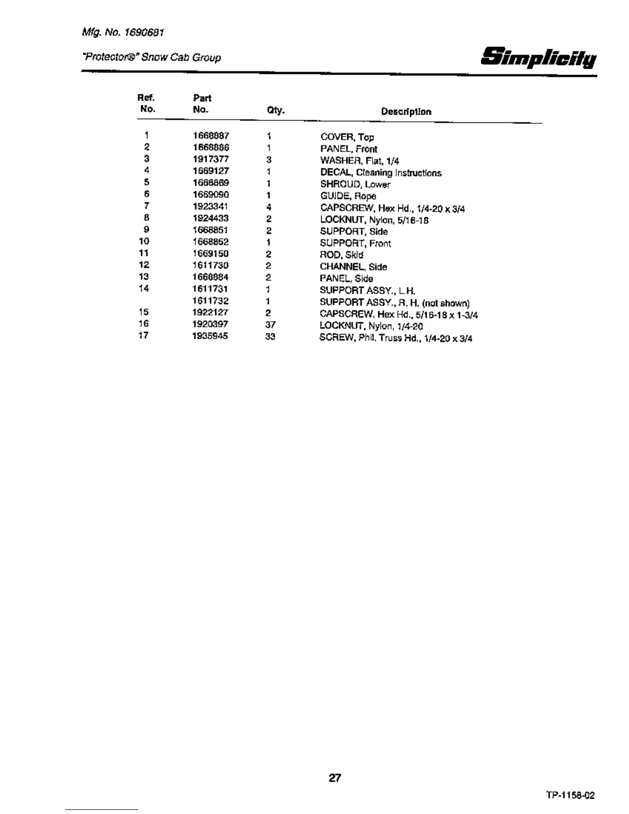 Other manuals for Simplicity 1080S