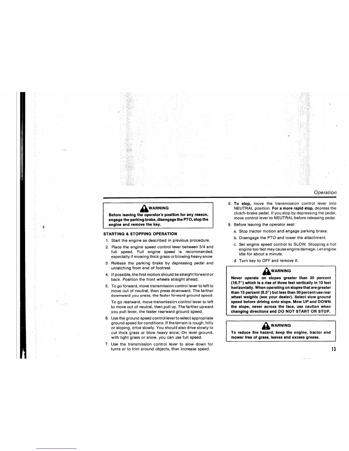 Simplicity 12LTH36 - Starting and Stopping Operation; Slope Operation Warnings
