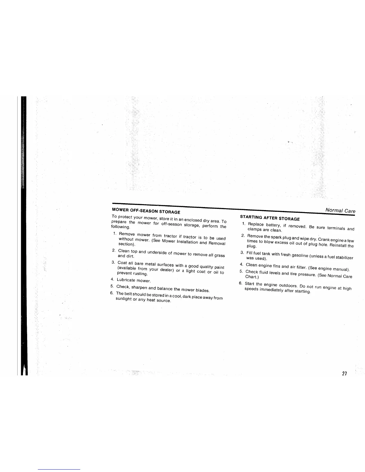 Simplicity 12LTH36 - Mower Off-Season Storage; Starting After Storage
