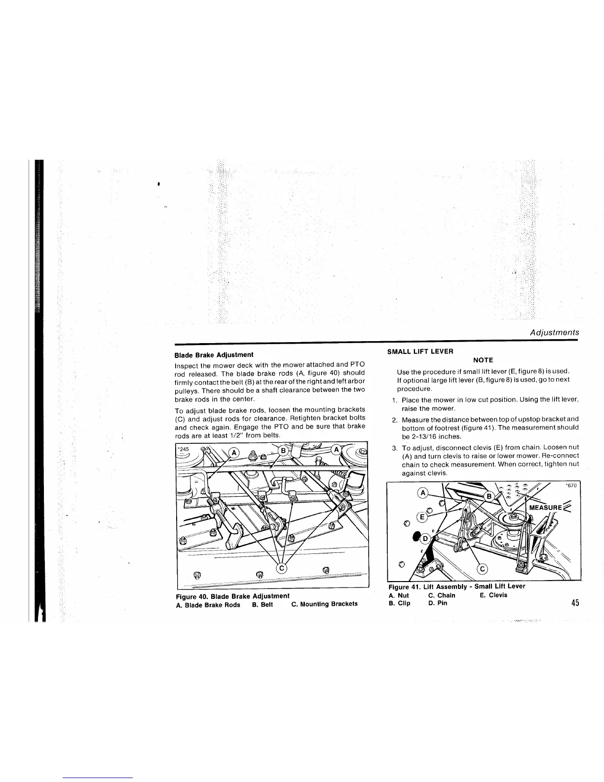 Simplicity 12LTH36 - Blade Brake Adjustment; Small Lift Lever Adjustment