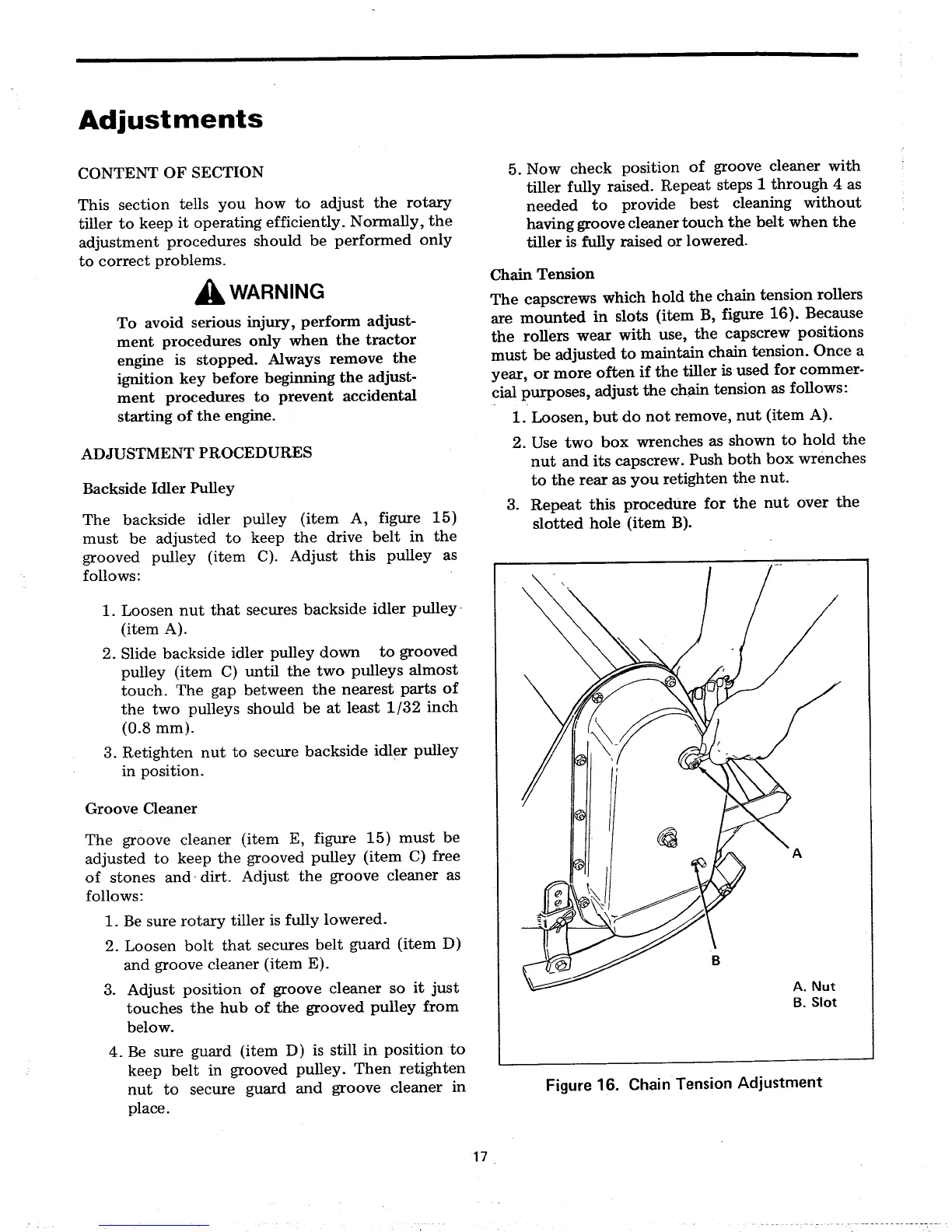 Simplicity 1690287 - Adjustments; Backside Idler Pulley; Chain Tension; Groove Cleaner