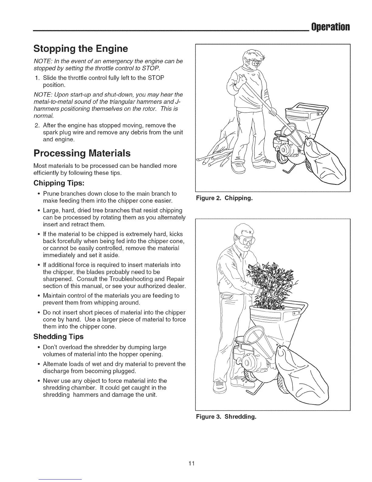 Do not insert short pieces of material into the chipper