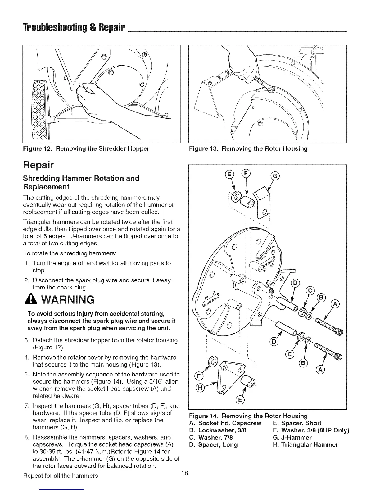 7. inspect the hammers (G, H), spacer tubes (D, F), and