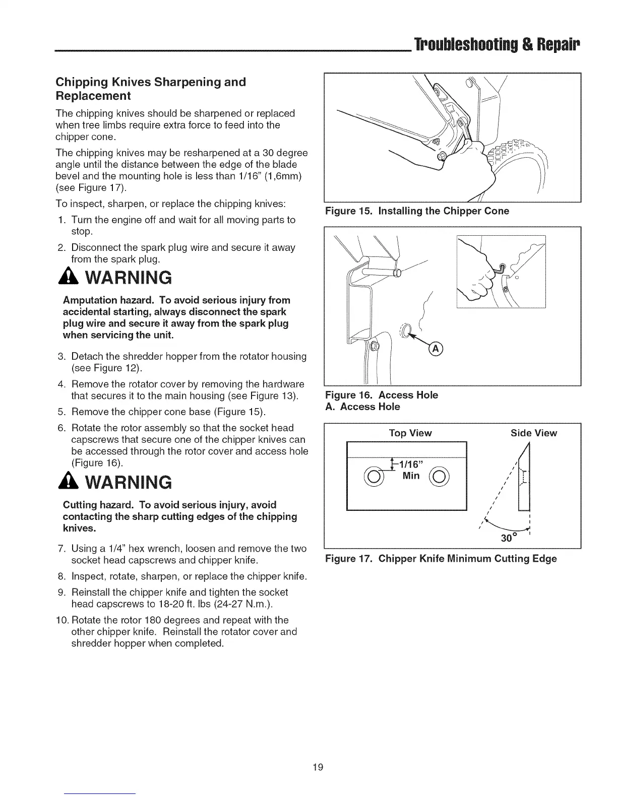 8. Inspect, rotate, sharpen, or replace the chipper knife.