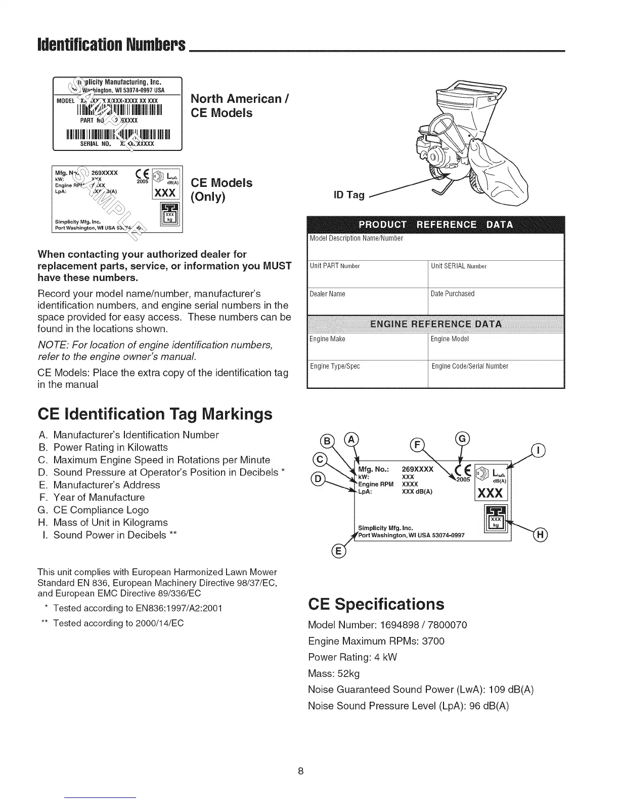 CE Models: Place the extra copy of the identification tag