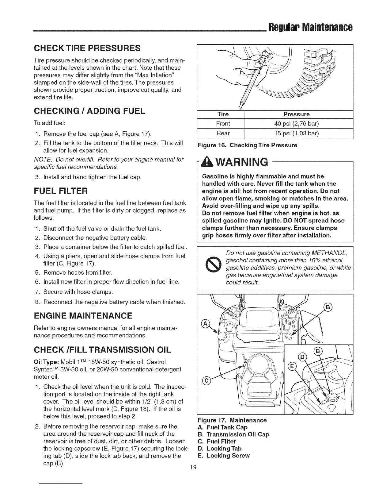 Do not use gasoline containing METHANOL,