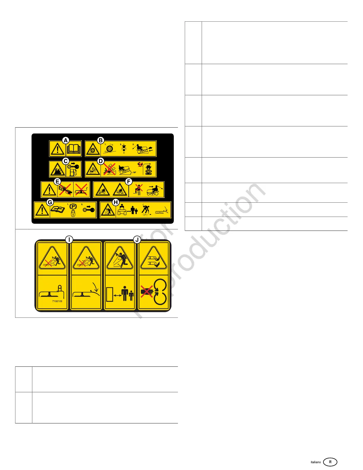 Confrontare le lettere (A - J) sulle icone delle etichette