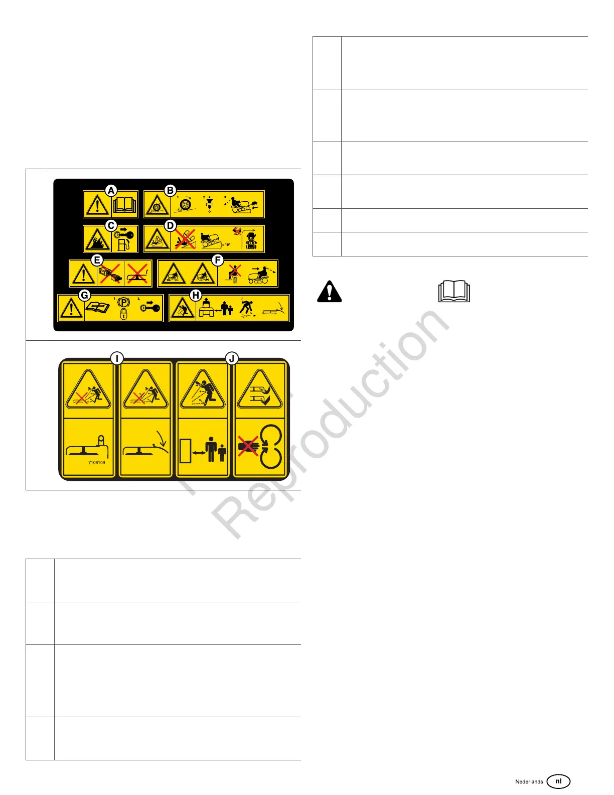 Belangrijk:Als een veiligheidssticker versleten of beschadigd