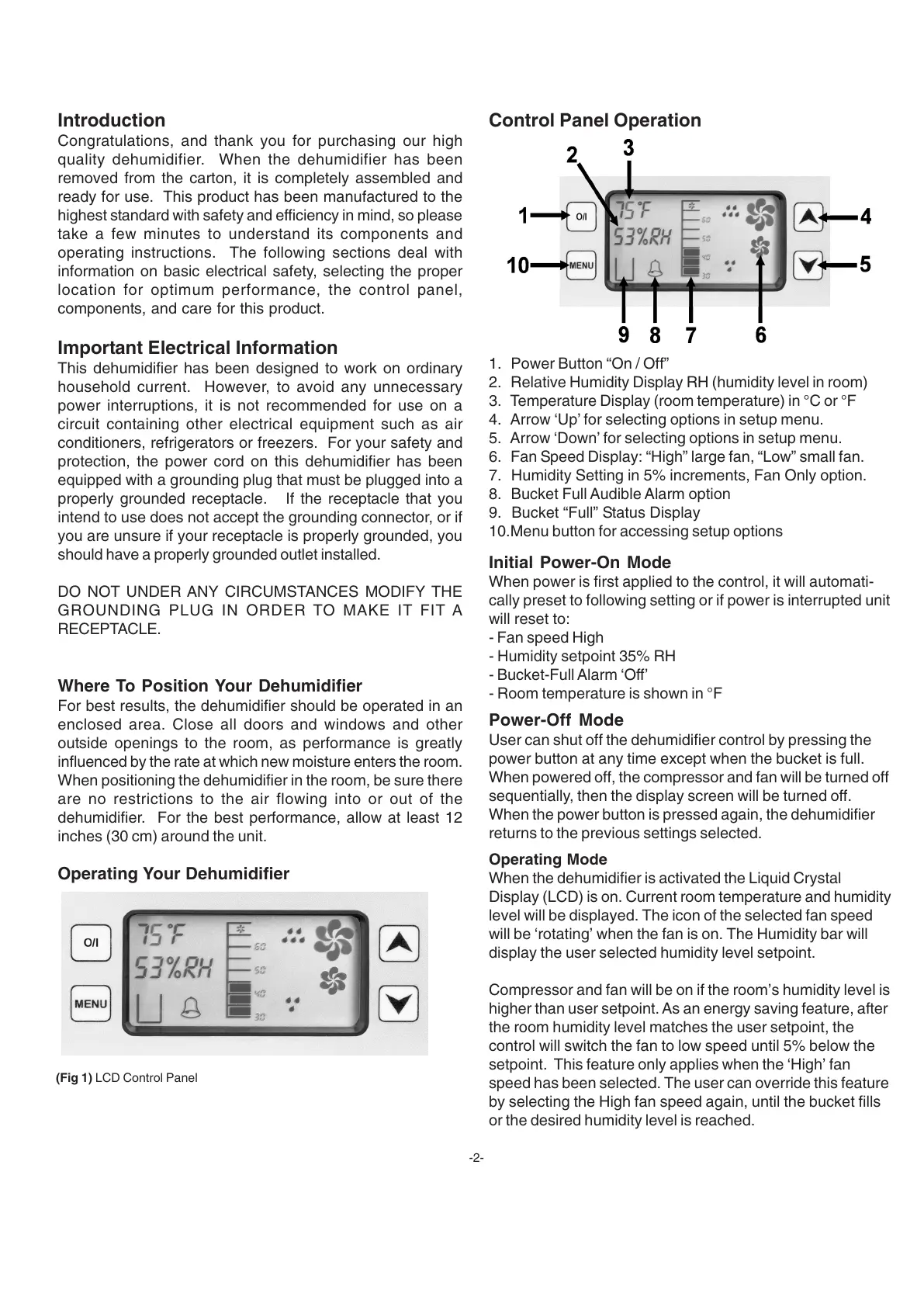 (Fig 1) LCD Control Panel