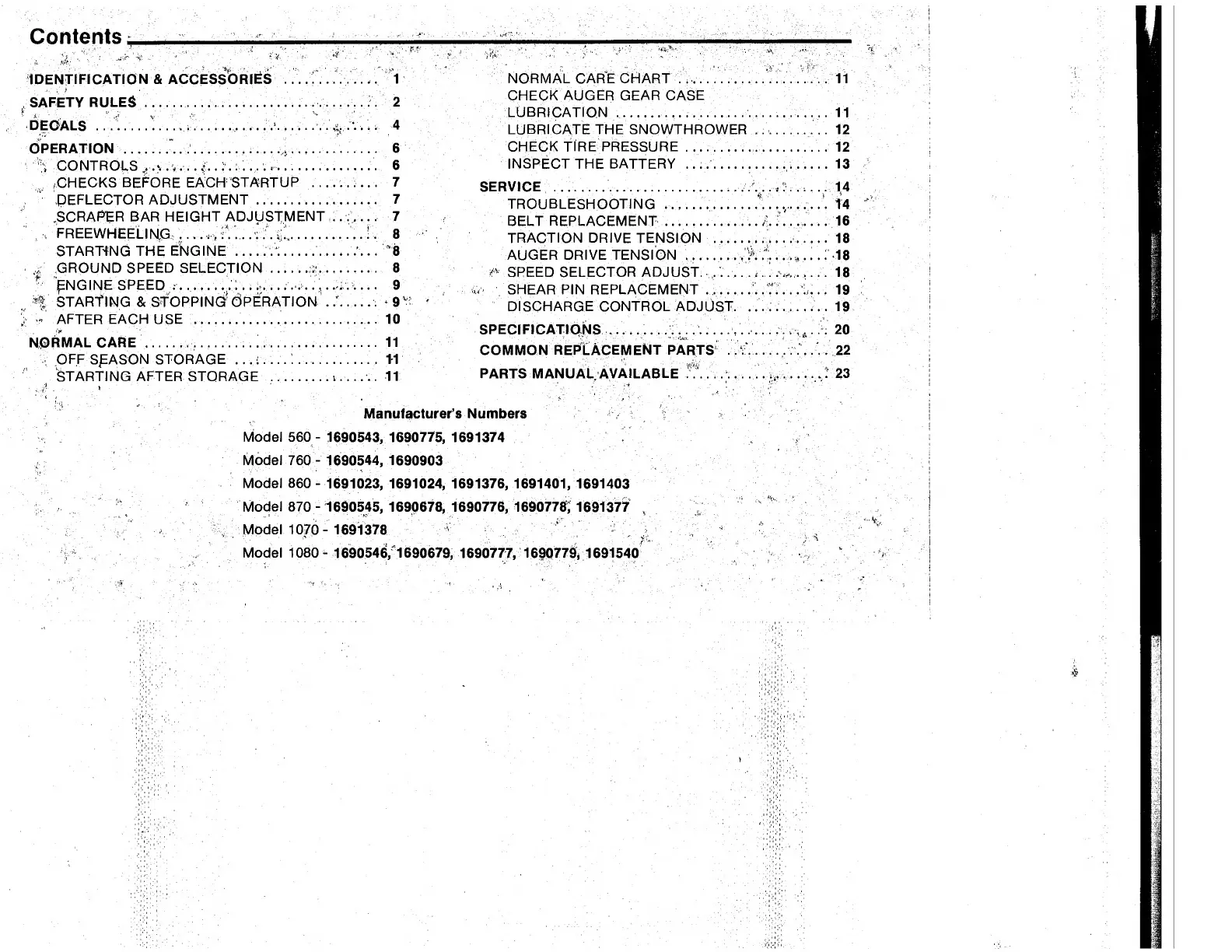Simplicity 560 - Table of Contents