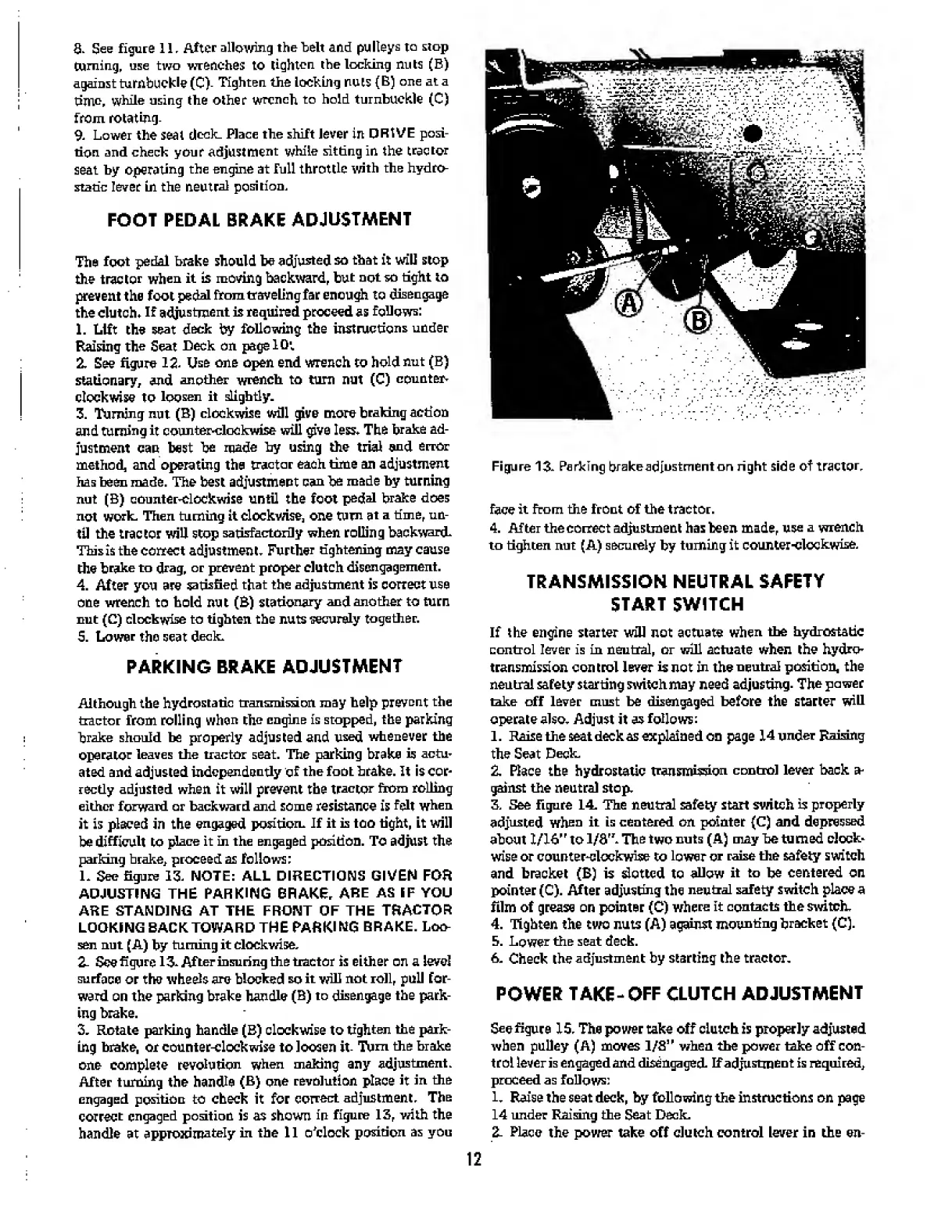 Simplicity 759 3415H - Parking Brake Adjustment; Transmission Neutral Safety Startswitch; Power Take-Off Clutch Adjustment