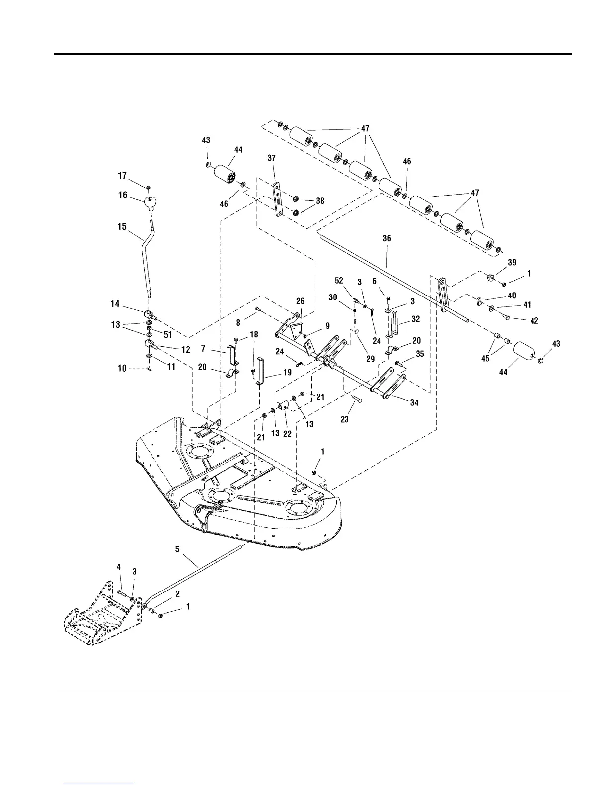 44" Mower Deck - Height Adjustment & Roller Bar Group