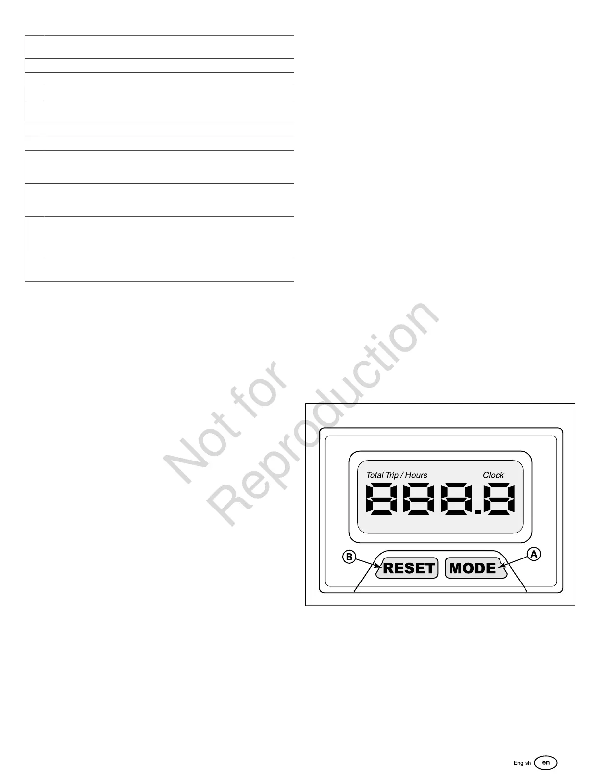 • Push the MODE button (A, Figure4) to show Trip Hours.