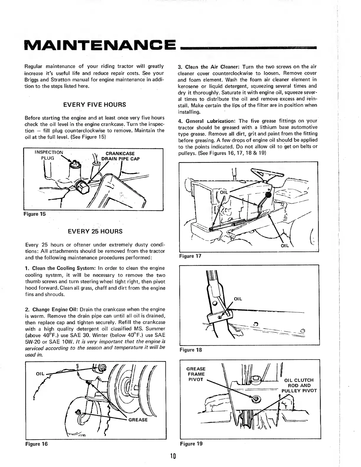Simplicity Broadmoor 5008 - MAINTENANCE; EVERY FIVE HOURS; EVERY 25 HOURS