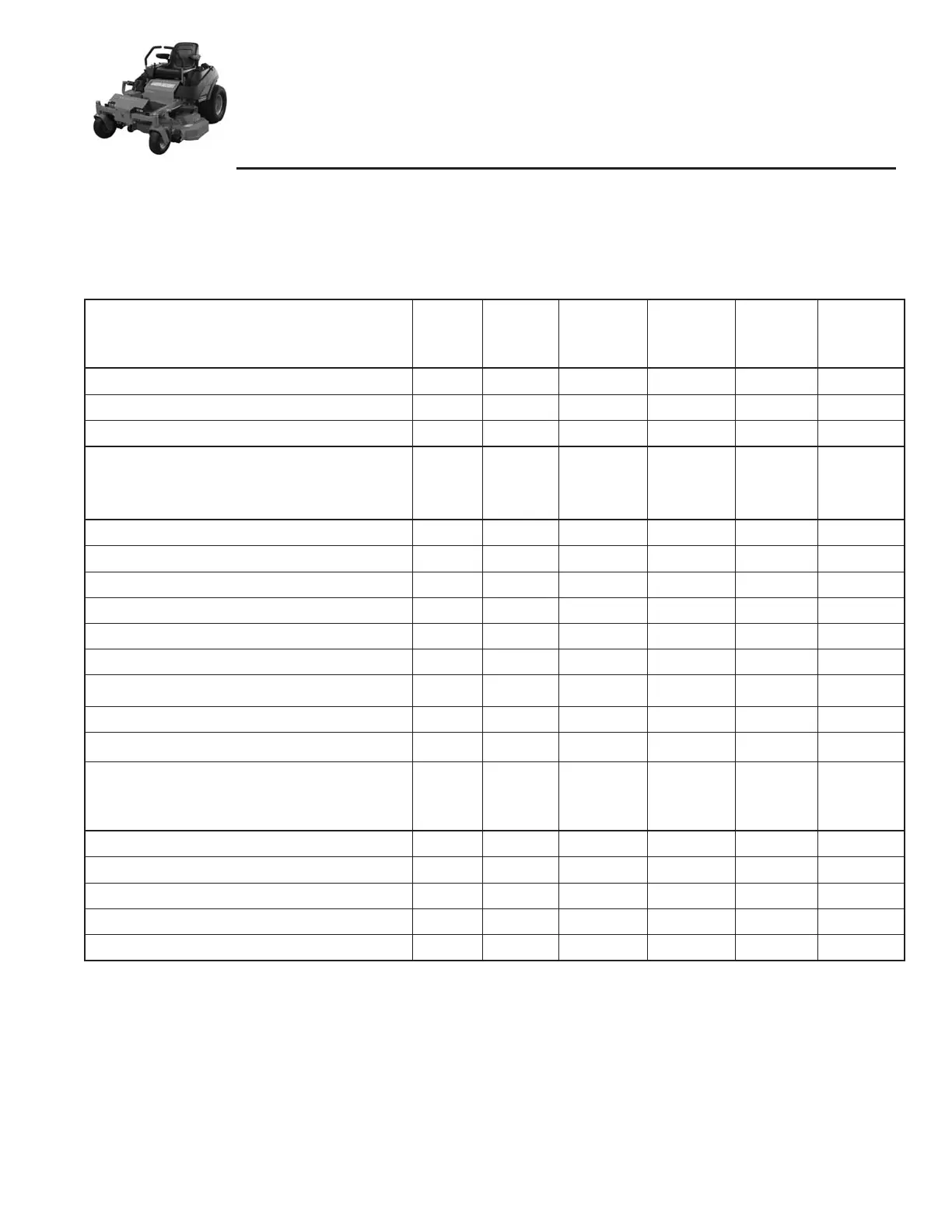 The following schedule should be followed for normal care of your rider and mower.You will need to keep a record of