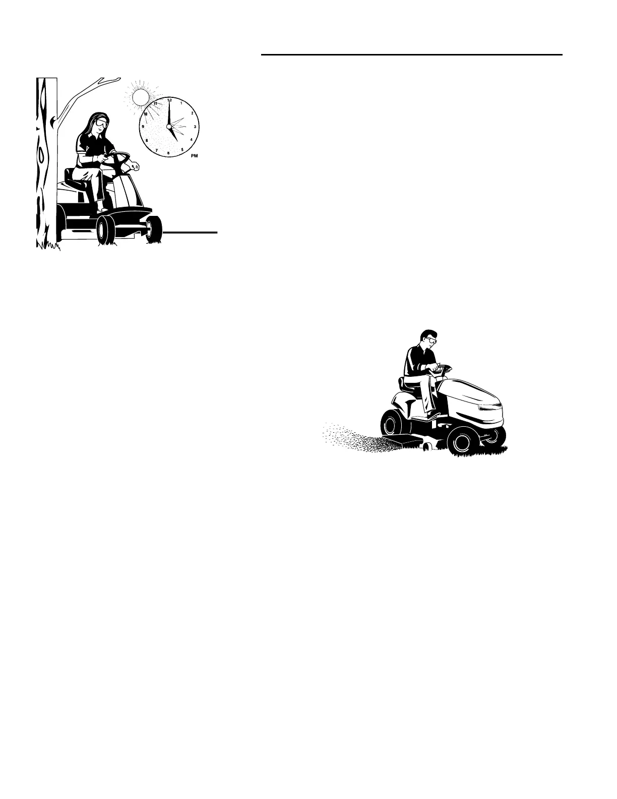 ● Mow at time of day when the grass is cool and dry. Late afternoon or