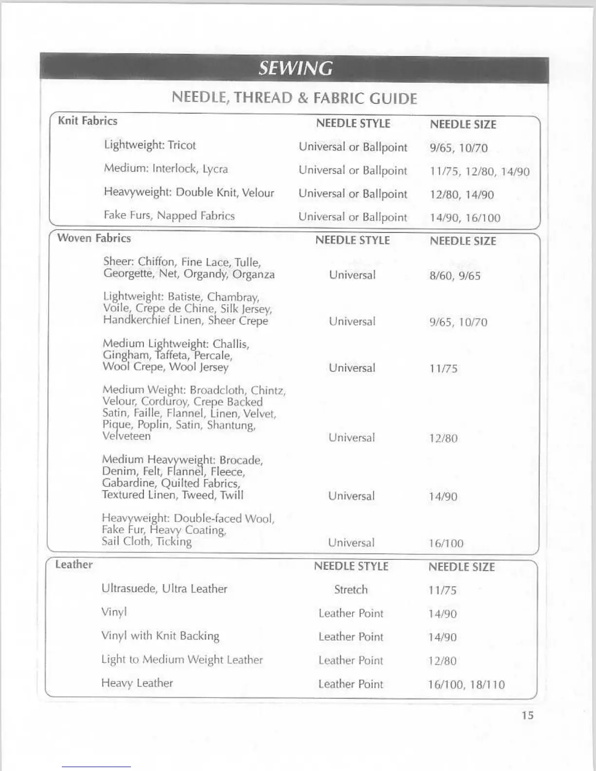 Simplicity Creative Spirit Plus SA2200 - Sewing (Continued); Needle, Thread & Fabric Guide; Built-in Stitches; Stitch A - Straight Stitch