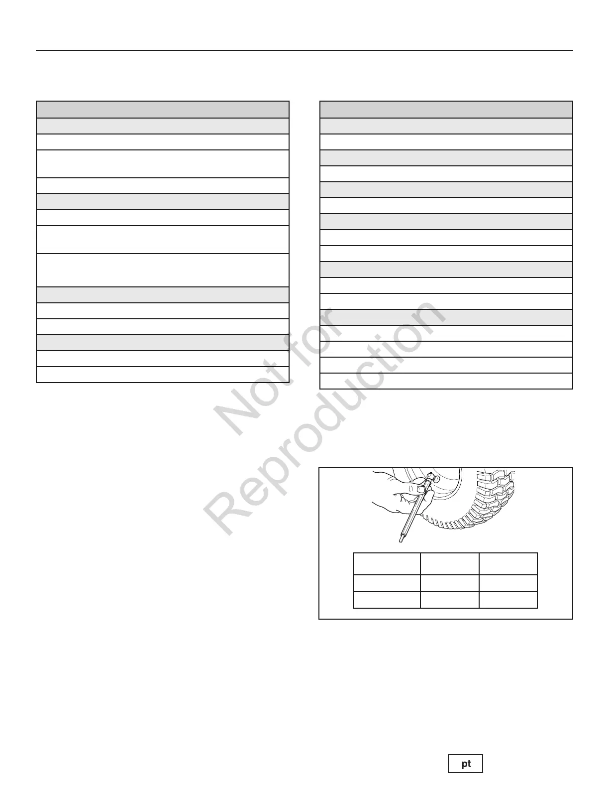 Tabela de manutenção