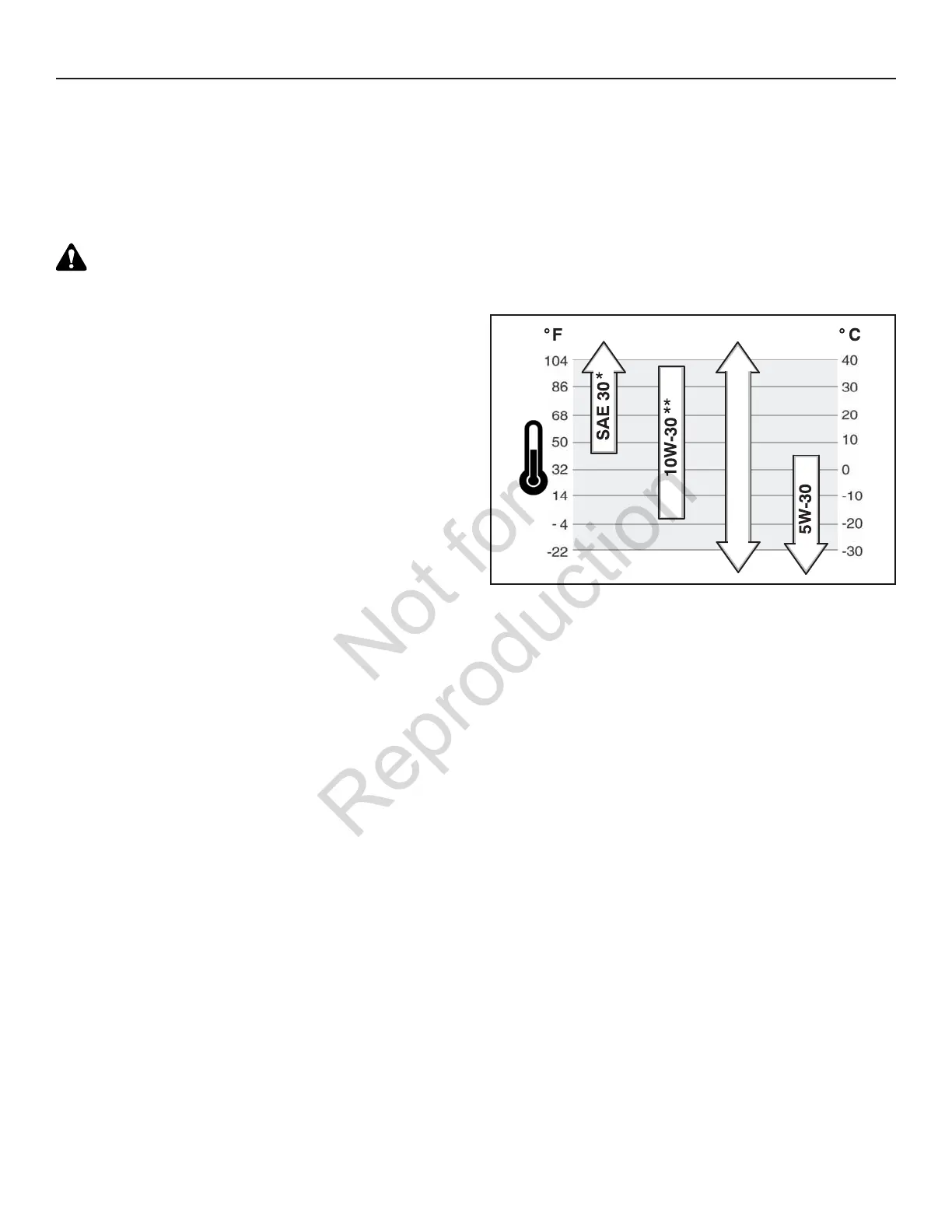* Při teplotách pod 4°C (40°F) povede použití SAE 30 k obtížnému startování.