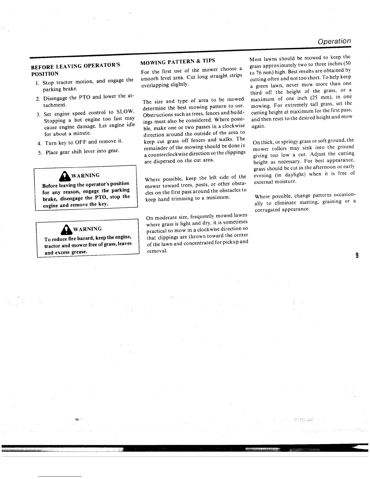 Simplicity Series 4200 - Before Leaving Operators Position; Mowing Pattern & Tips