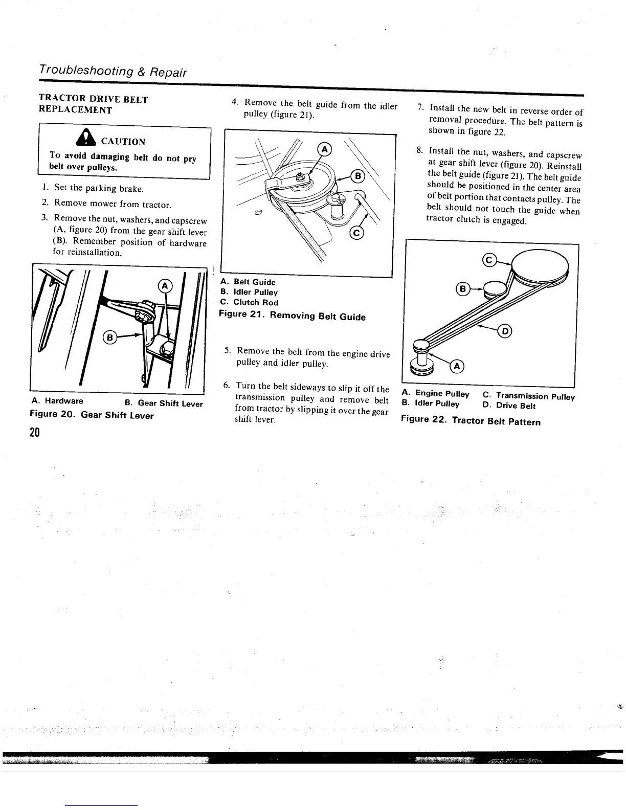 Simplicity Series 4200 - Tractor Drive Belt Replacement; Removing Belt Guide; Gear Shift Lever; Tractor Belt Pattern