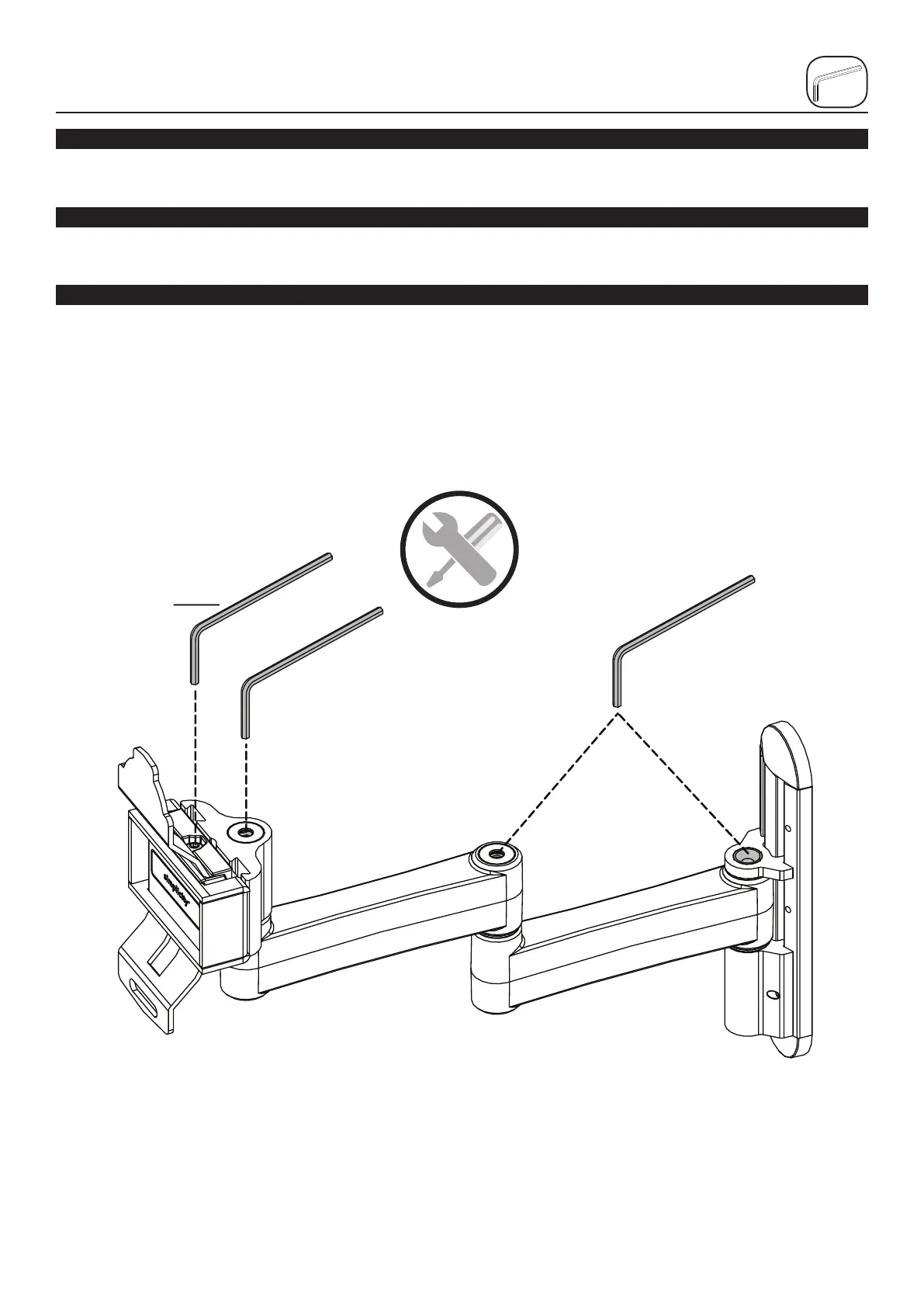 A: Réglez la tension de pivotement à gauche/droite. B: Réglez la tension d’inclinaison vers le haut/bas. C: Réglez la tension d’extension/rétraction des bras.