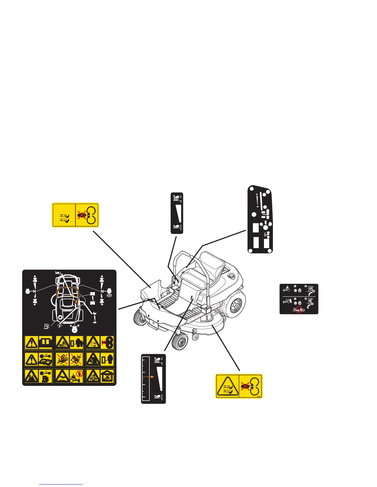 sikkerhedsmærkater er at finde på rideren og klipperen.