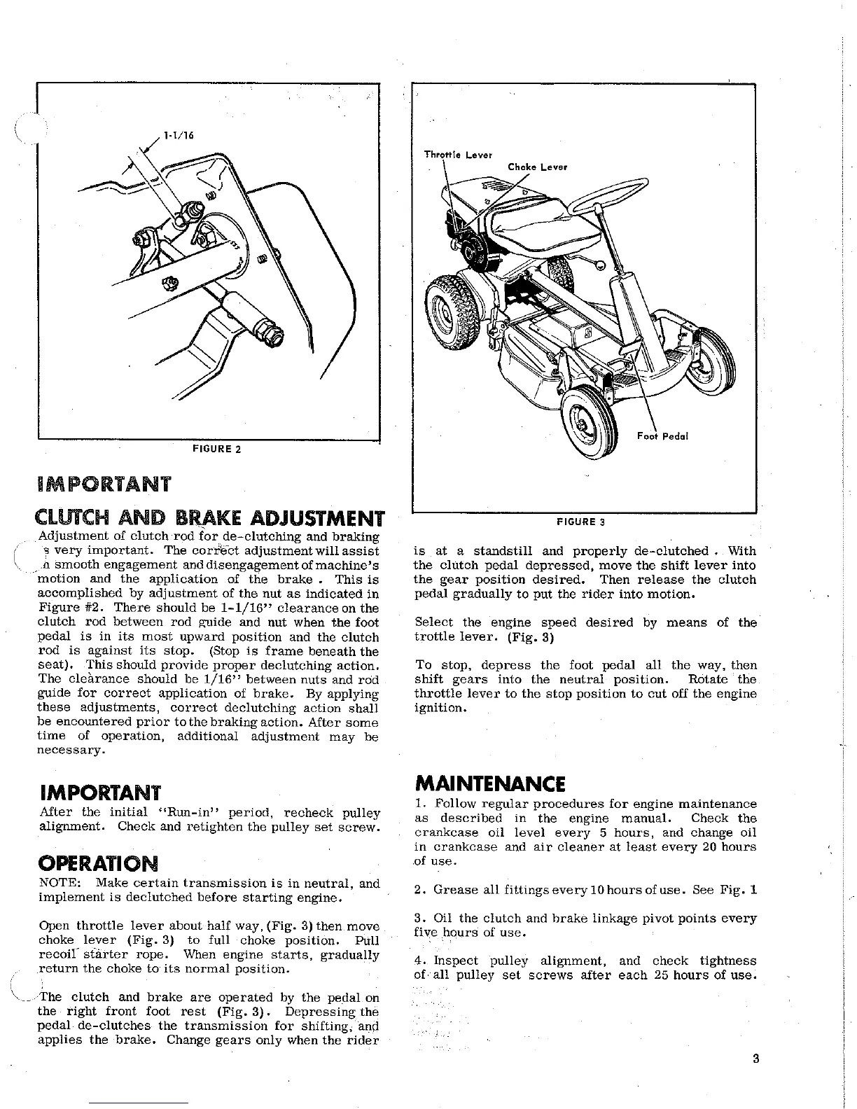 Simplicity Wonderboy 404 - Clutch and Brake Adjustment; Operation; Maintenance