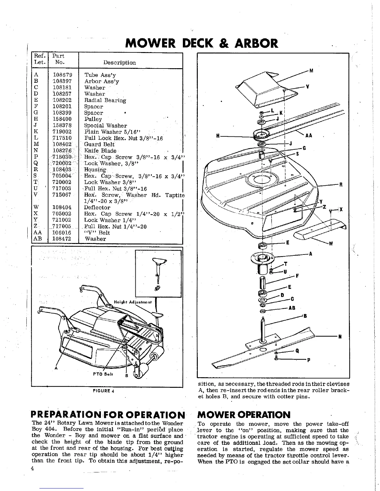 Simplicity Wonderboy 404 - Mower Deck and Arbor; Exploded Diagrams and Parts Lists