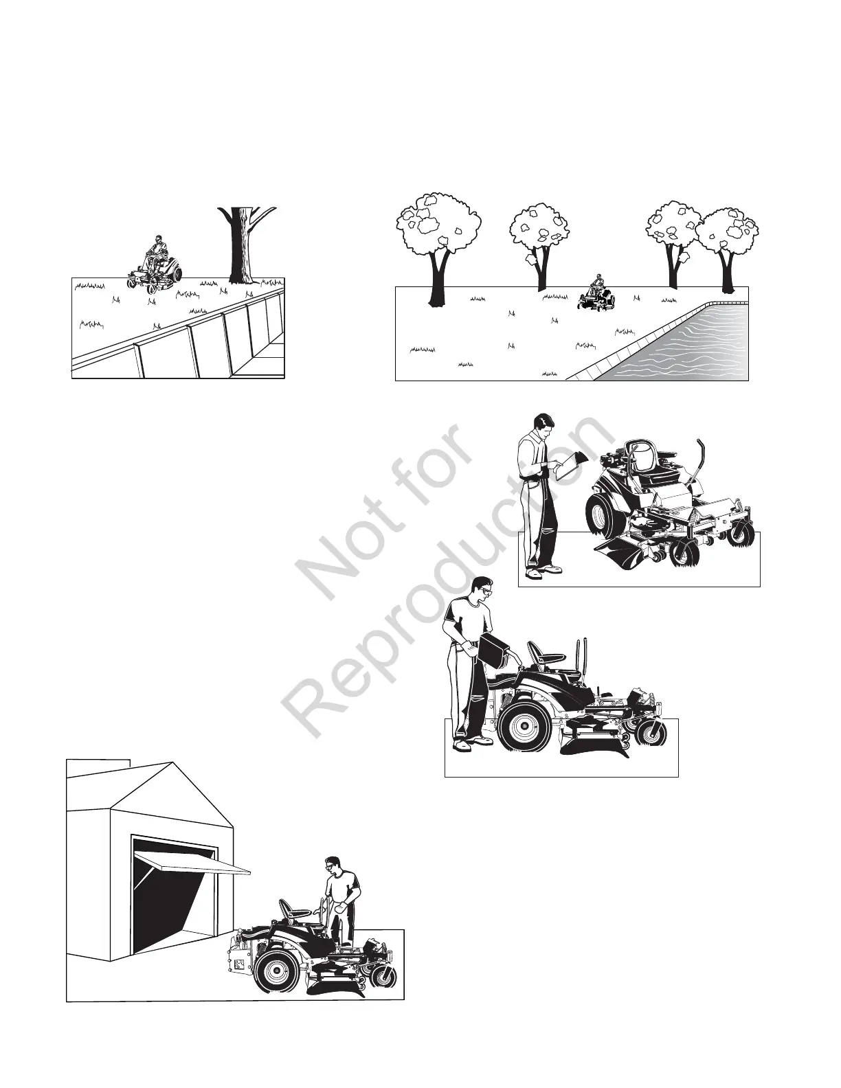 clearance around these hazards and hand-trim with a walk behind mower or string trimmer. Wheels dropping over retaining walls,