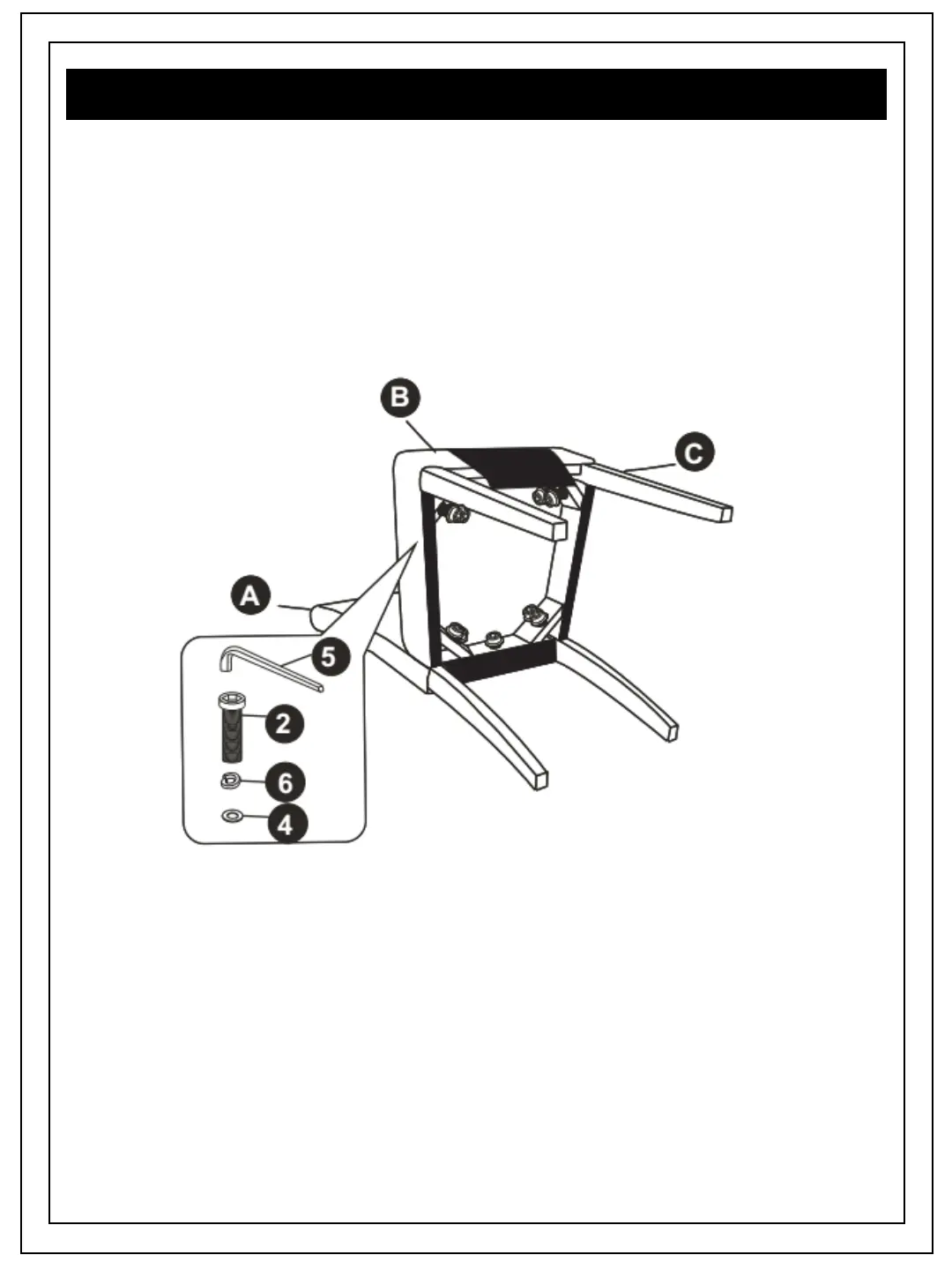 Attach Front Legs (C) to Seat (B) using Allen Keys Screws (2)