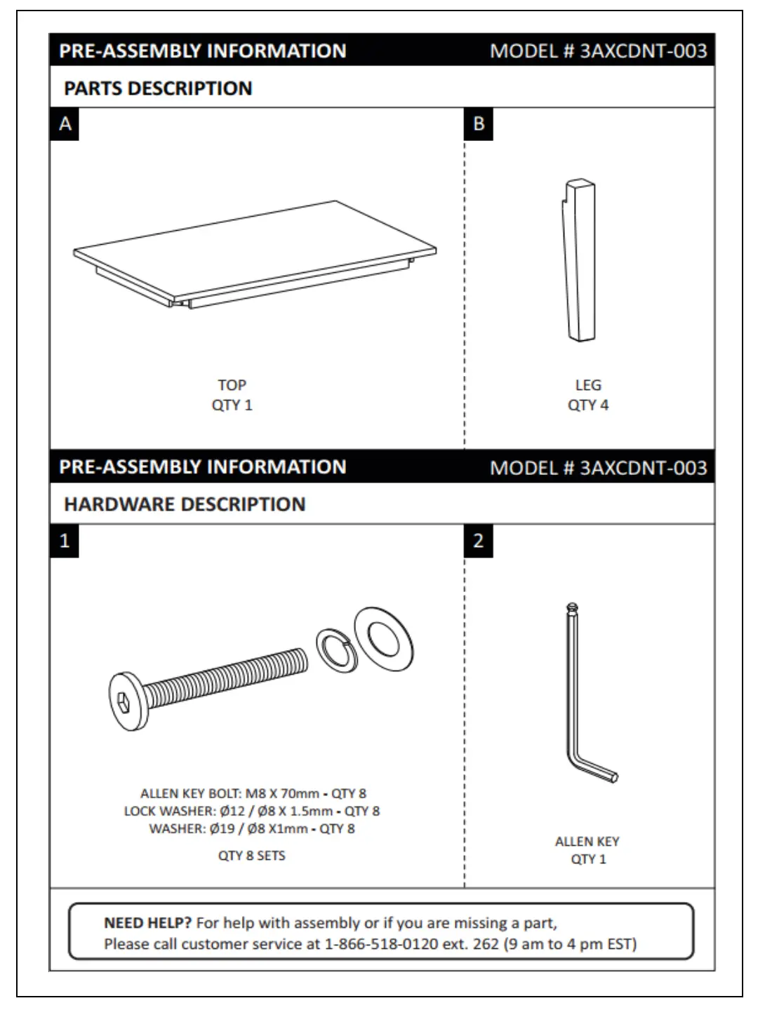 SIMPLIHOME ANDOVER - Rectangular Dining Table Assembly; Table Pre-Assembly Information