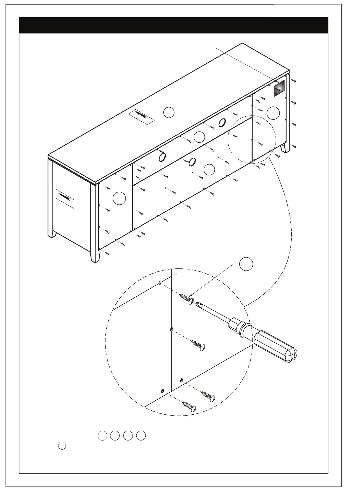 1. Attach Back Panels LL , LR , L1 , L2 to back of TV stand using Phillips Screws Round