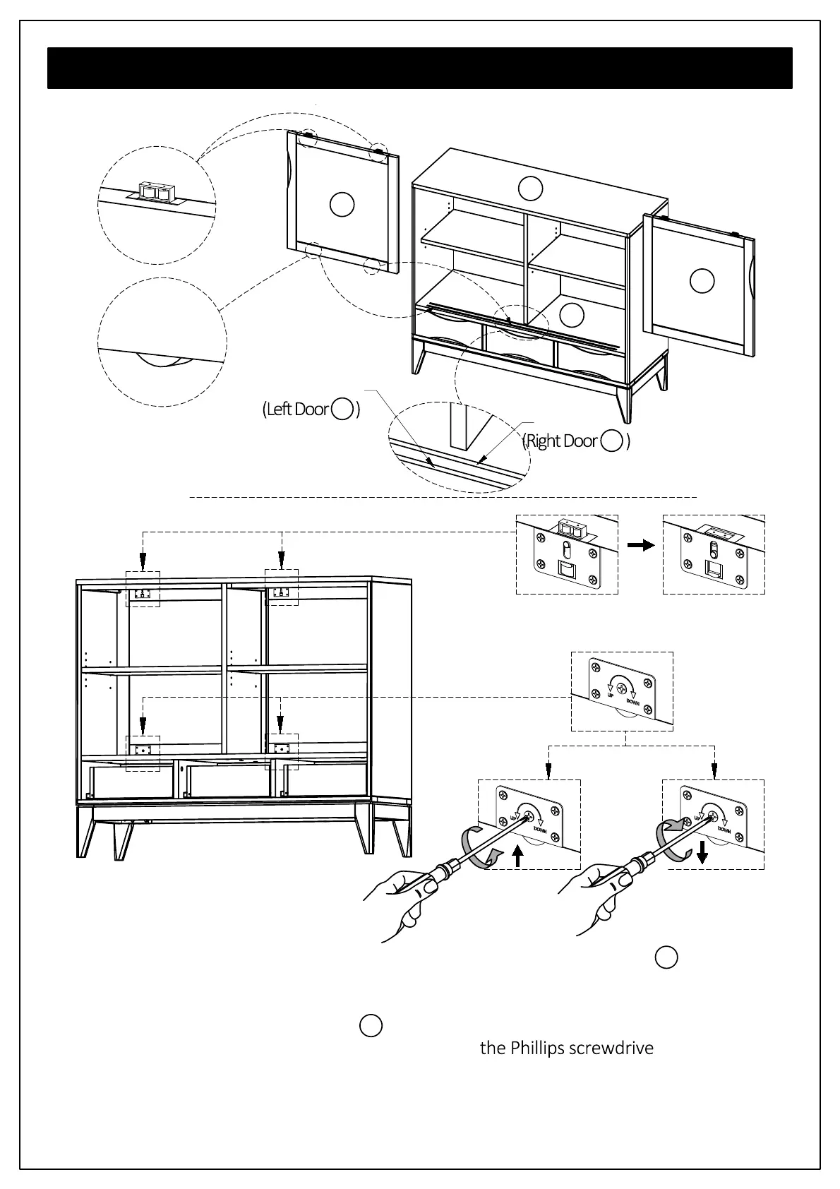 1. Slide the wheels on bottom of each door to the slots on Middle Shelf N .