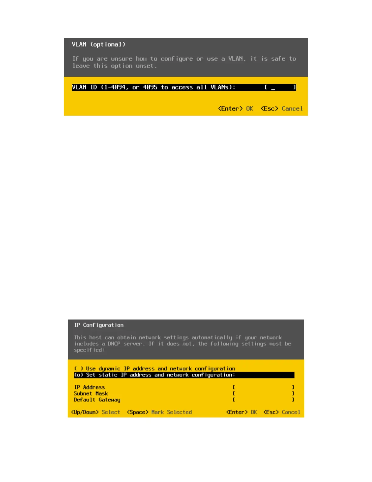 1. Select IP Configuration in the Configure Management Network screen.