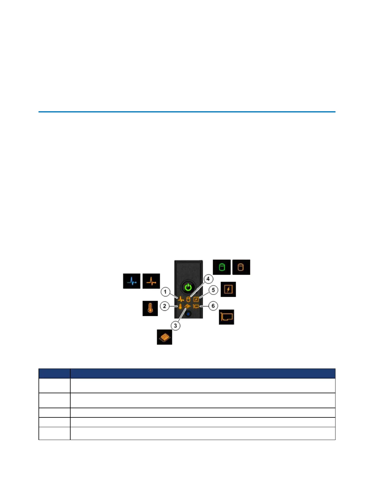 The following image shows the diagnostic indicators on the front panel and the colors they glow depending