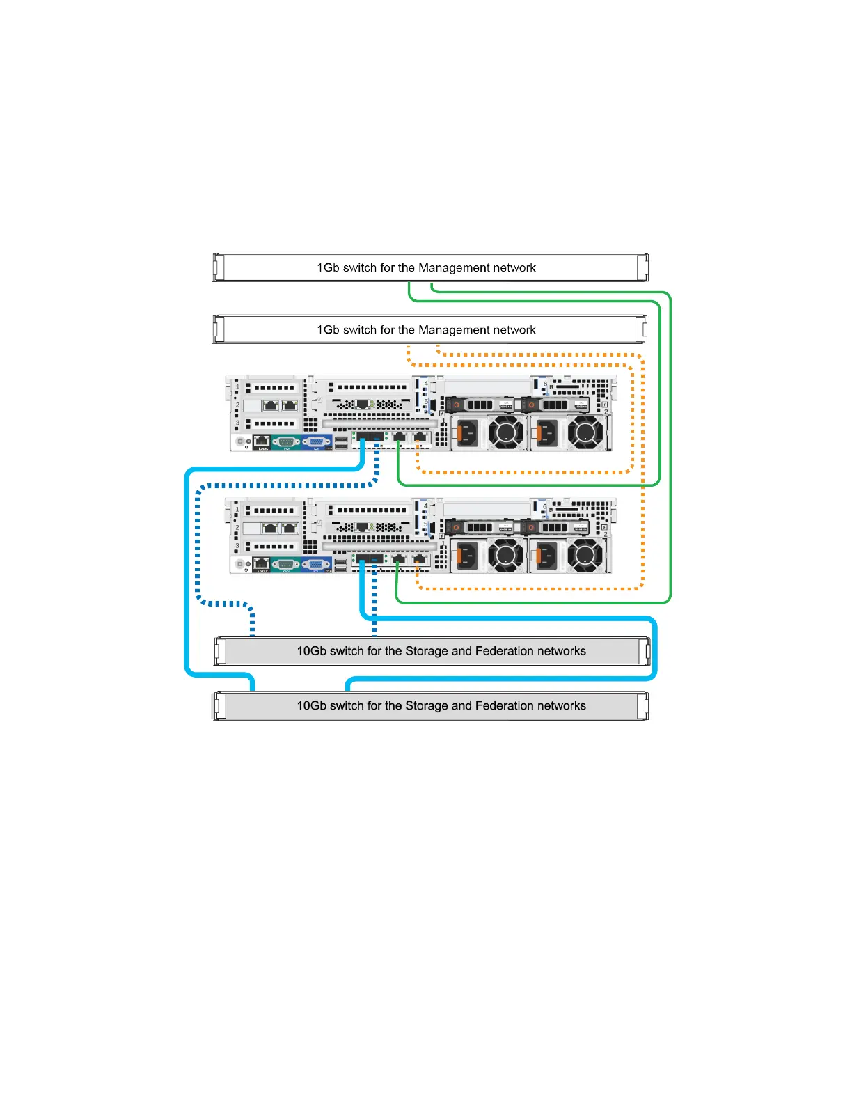 connections to 10GbE switches for the Storage and Federation networks, and redundant connections to 1GbE