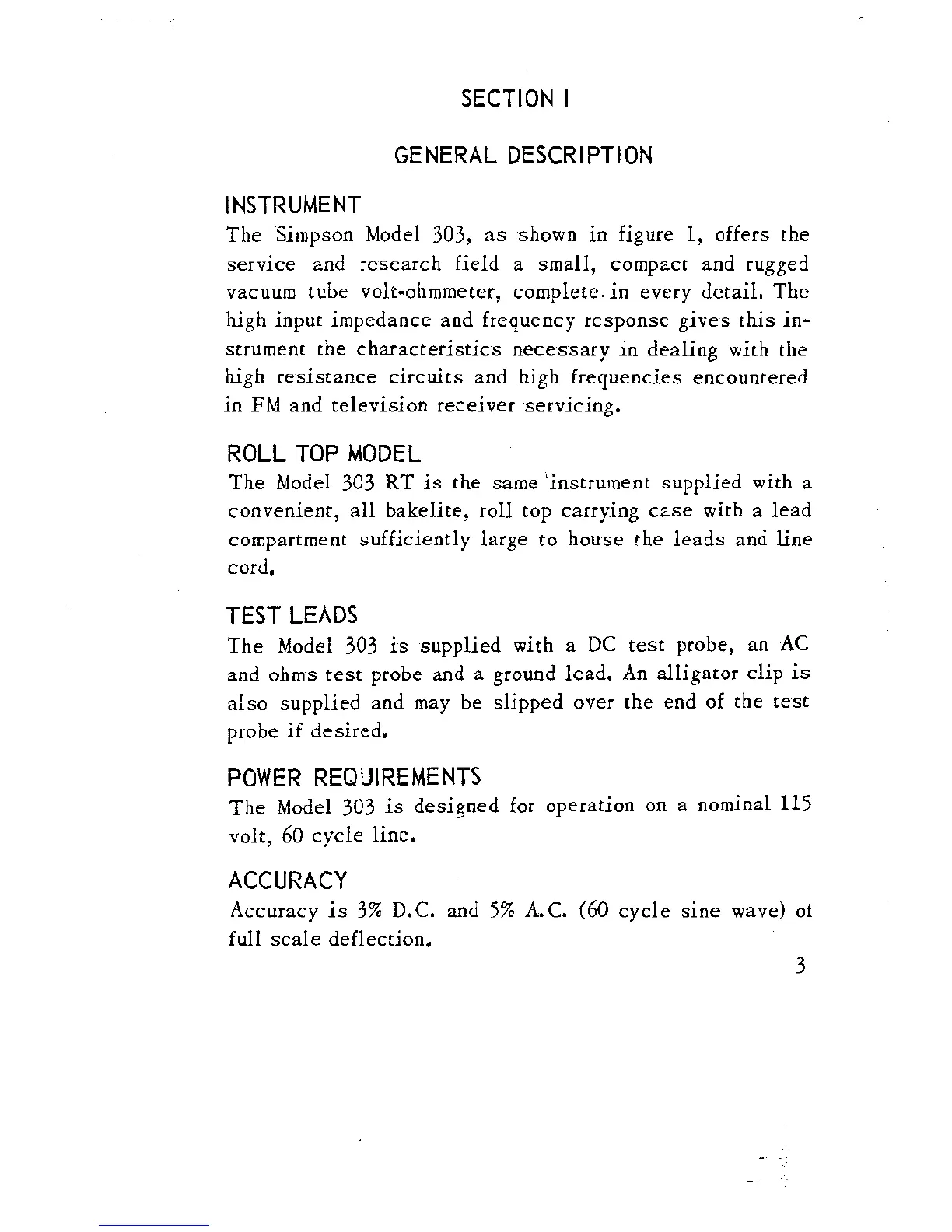 Simpson Electric 303 - General Description; Instrument Overview; Accuracy Specifications