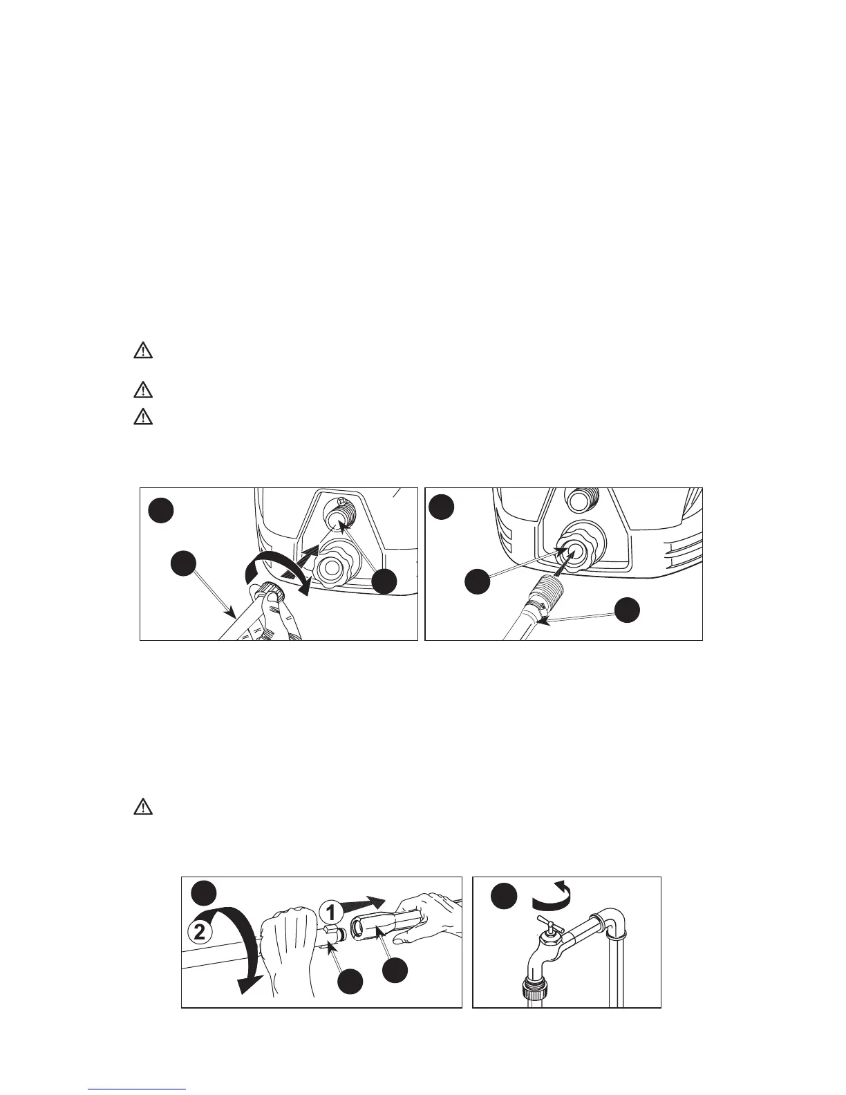 1. Connect the high pressure hose (E) to the machine outlet (K). Ensure the