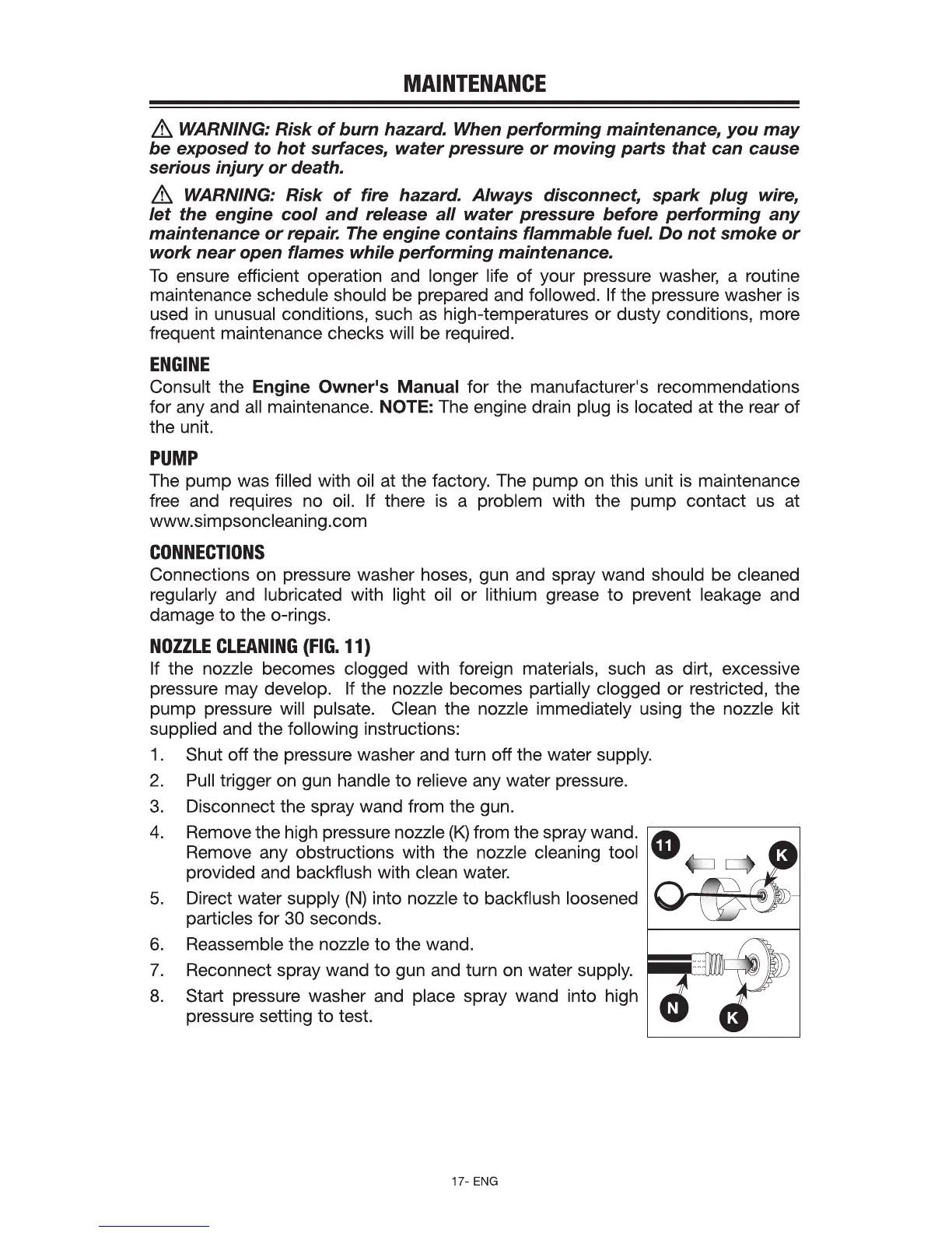 Simpson 3125-S - MAINTENANCE; Routine Maintenance Procedures; Nozzle Cleaning