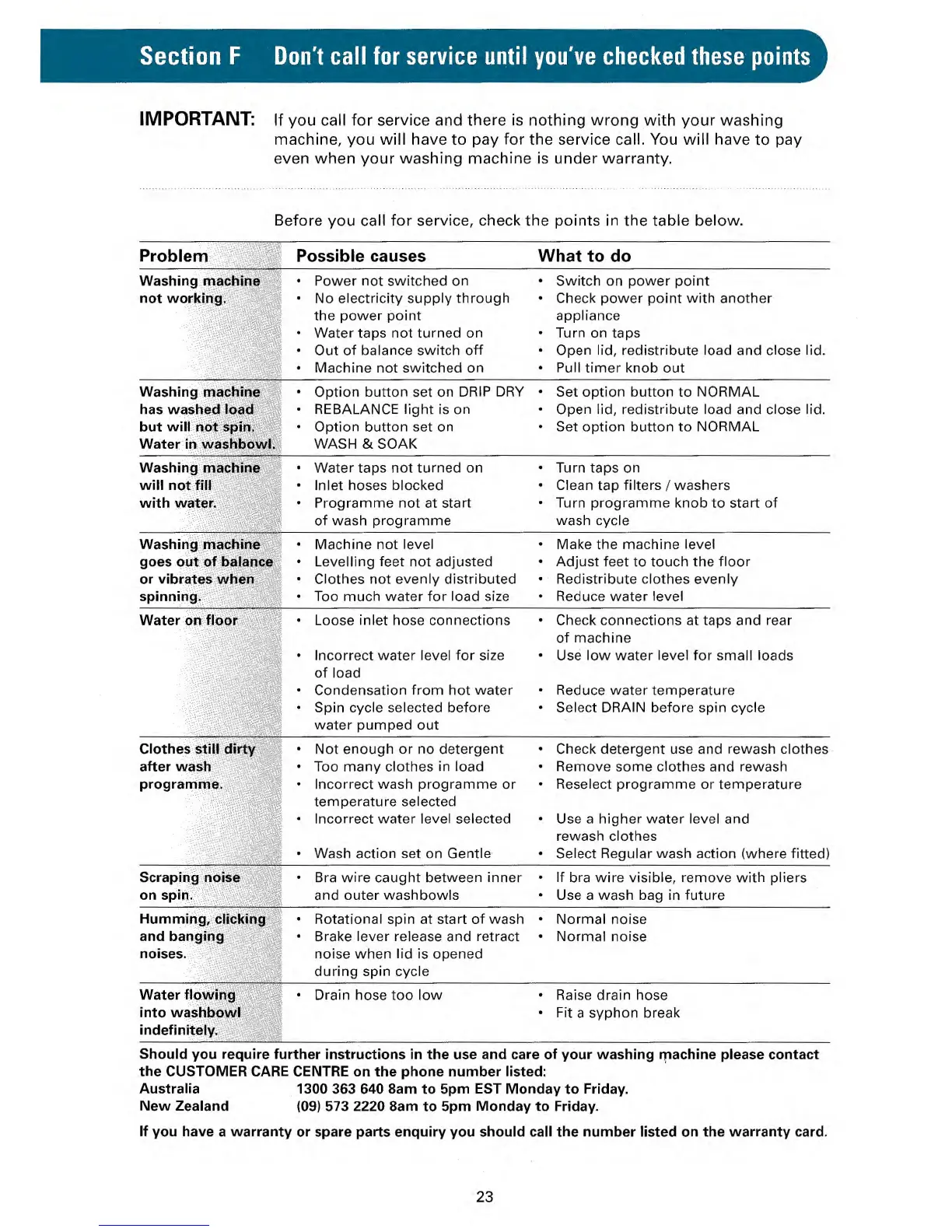 If you have a warranty or spare parts enquiry you should call the number listed on the warranty card.
