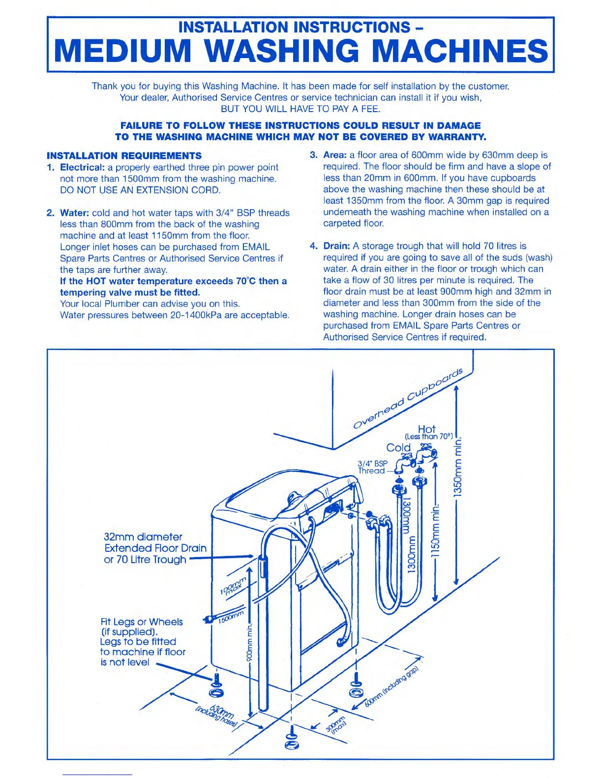 Thank you for buying this Washing Machine. It has been made for self installation by the customer.